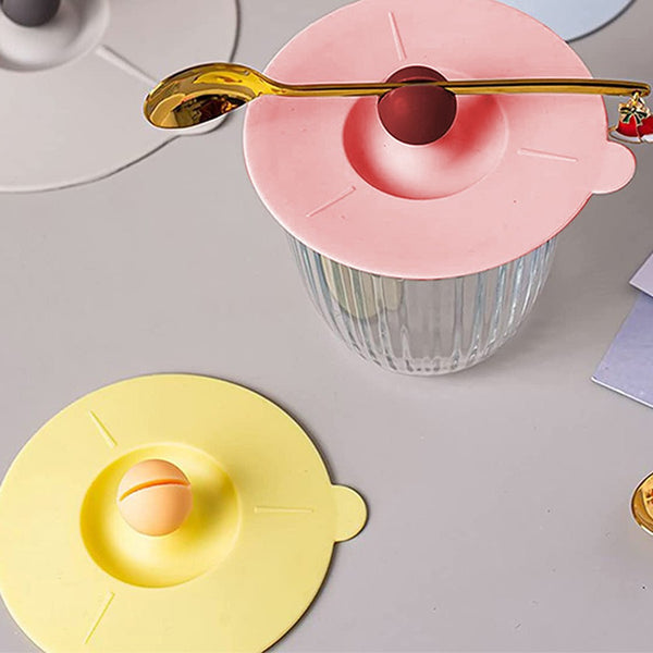 4Pcs Anti-dust Silicone Cup Lid Mug Cup Cover with Spoon Holder