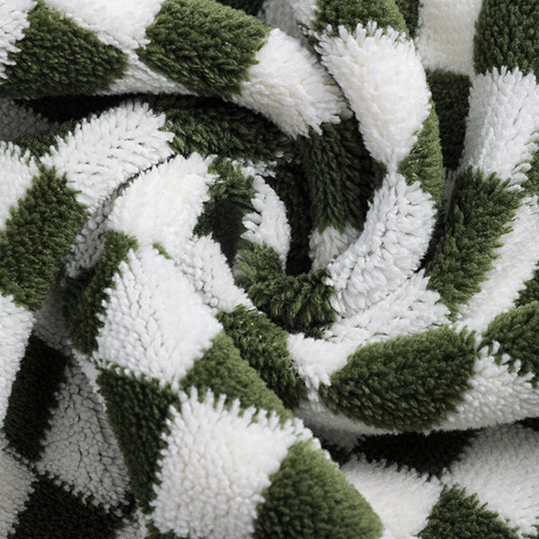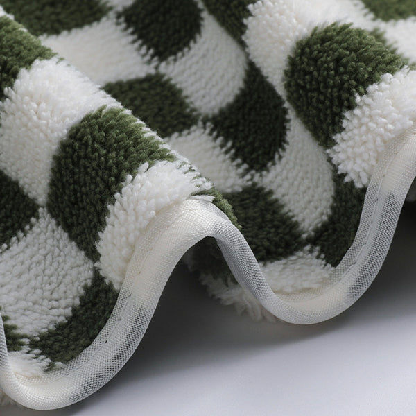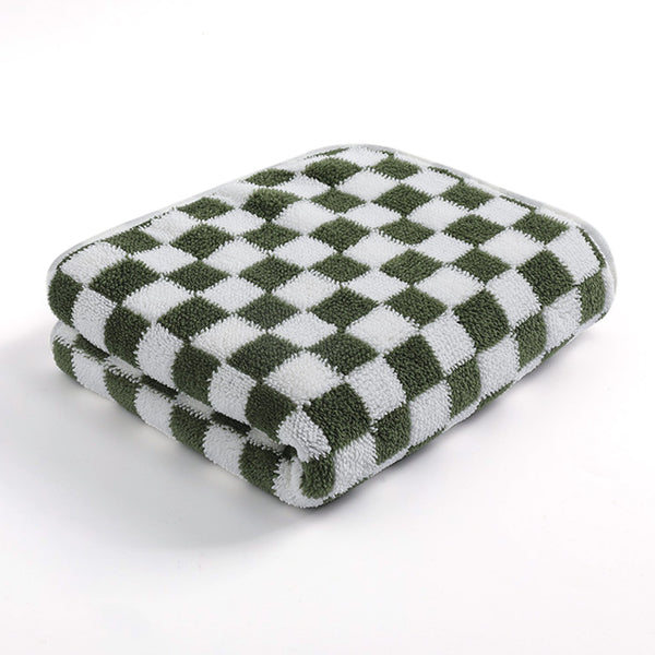 Ultra-soft 4-piece towel set featuring premium coral fleece material with stylish checkered pattern for superior absorbency and quick drying.