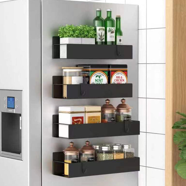 The spice storage rack organizer designed to securely attach to metal surfaces, providing convenient and space-saving storage for spices and small kitchen essentials.
