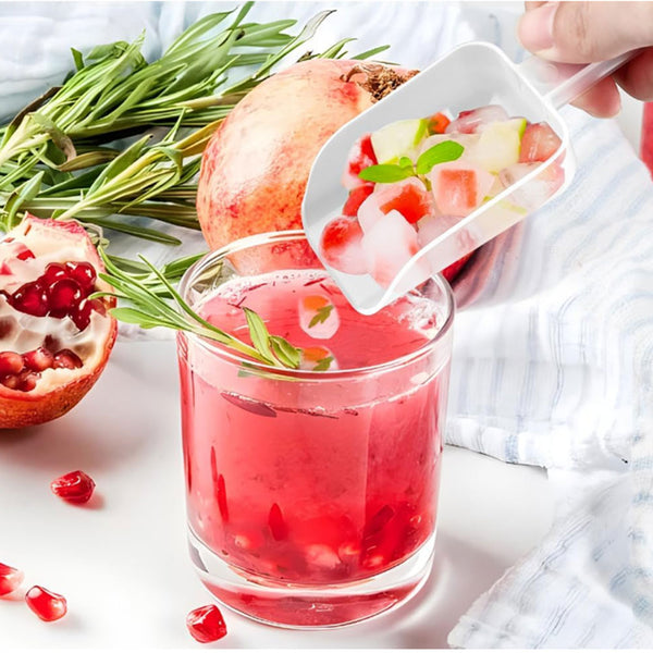 This ice mold is a convenient and space-saving solution for making and serving ice, featuring multiple compartments for easy ice cube release and a handy scoop for effortless serving.
