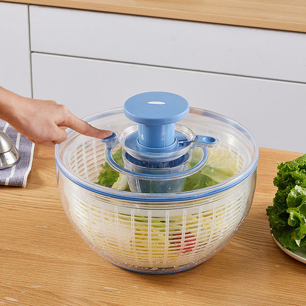 The salad spinner doubles as a vegetable and fruit strainer, and as a serving bowl.