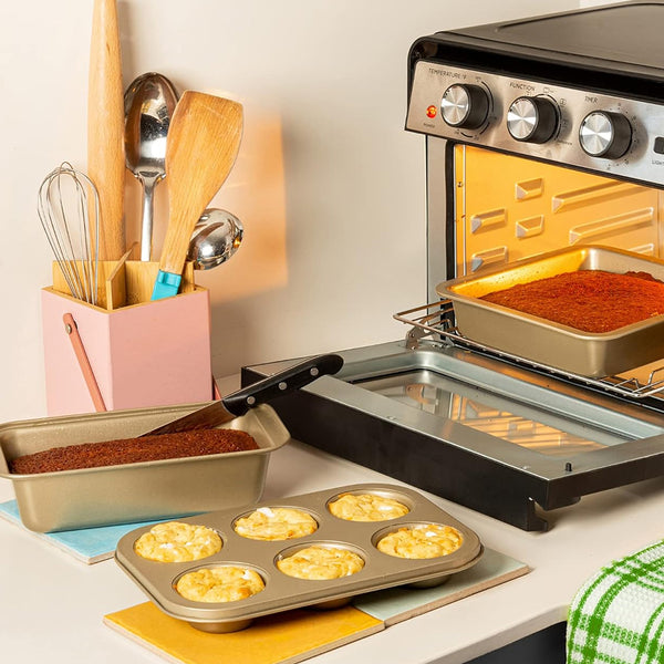 Unleash your baking creativity with our nonstick bakeware, where easy release, easy cleaning and durable design combine for a delightful baking experience.