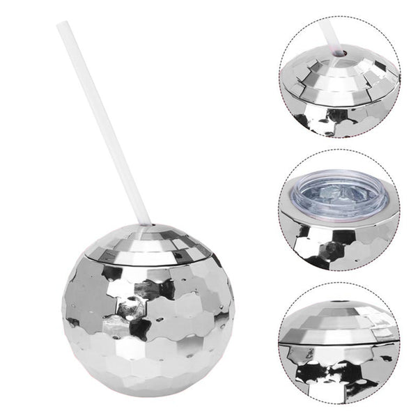 600ml Disco Ball Mug Cocktail Nightclub Party Wine Glass Cup with Straw Silver