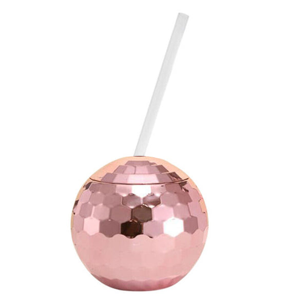 600ml Disco Ball Mug Cocktail Nightclub Party Wine Glass Cup with Straw Pink