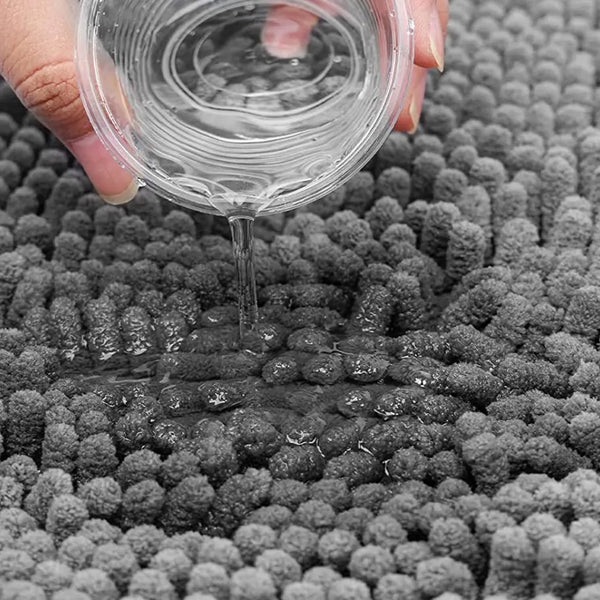 - Featuring a thick chenille layer that absorbs water to prevent accident.