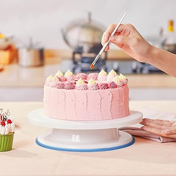 • The turntable stand revolves smoothly with hidden ball bearings and helps you easily decorate cakes for birthdays, weddings, and other events.