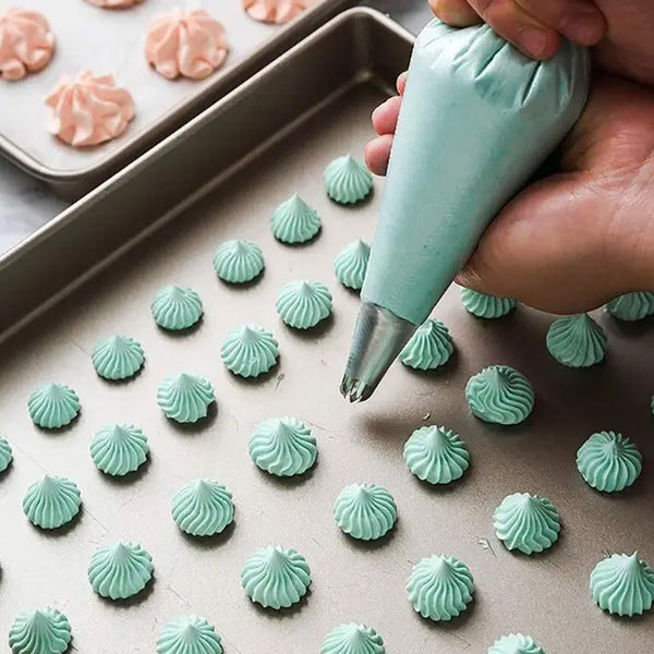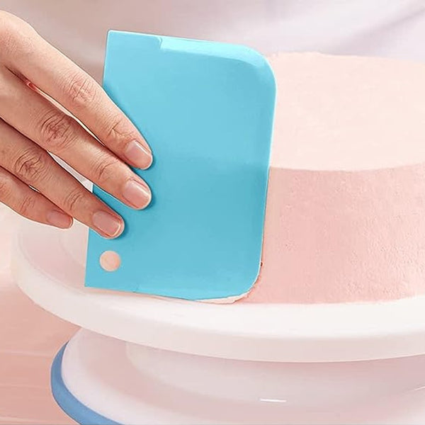 • The set includes: 3 scrapers, 1 cake leveler, 2 icing couplers, 1 cleaning brush, 1 cake turntable, 30 disposable piping bags, 1 reusable piping bag, 1 straight cake spatula, 1 curved cake spatula, 1 puff tip, 22 piping tips (random shape).