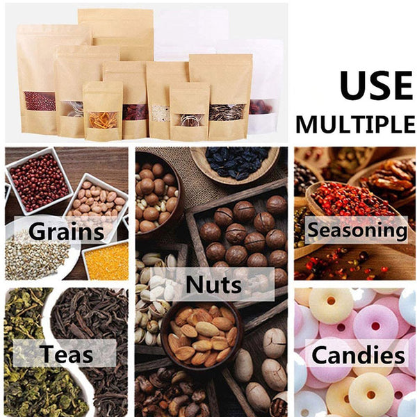 50Pcs Visible Resealable Kraft Paper Pouch Self Sealing Zipper Food Storage Bag