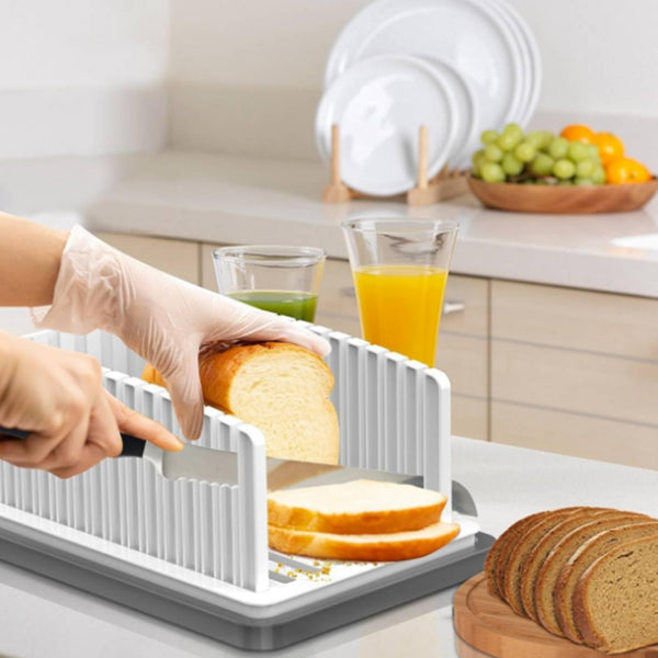 Introducing our bread slicer: a convenient, precise tool for effortlessly slicing your favorite loaves into uniform and perfect slices every time.