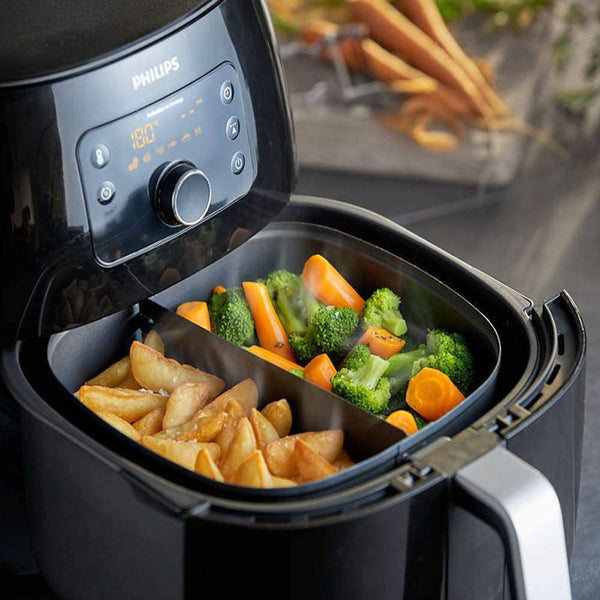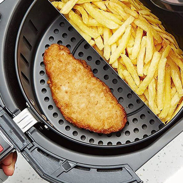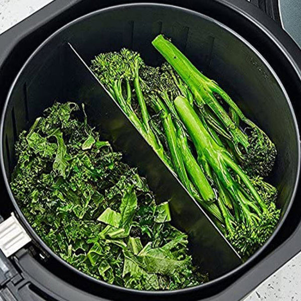 - Air Fryer basket divider keeps food separated and speeds up the overall cooking process by allowing you to cook two things at once.