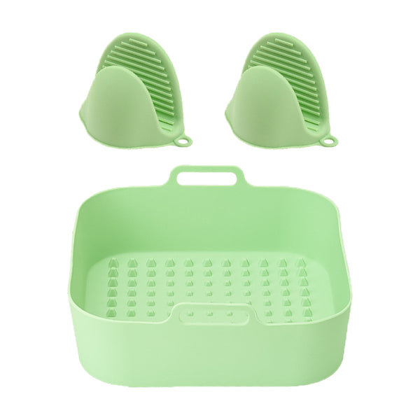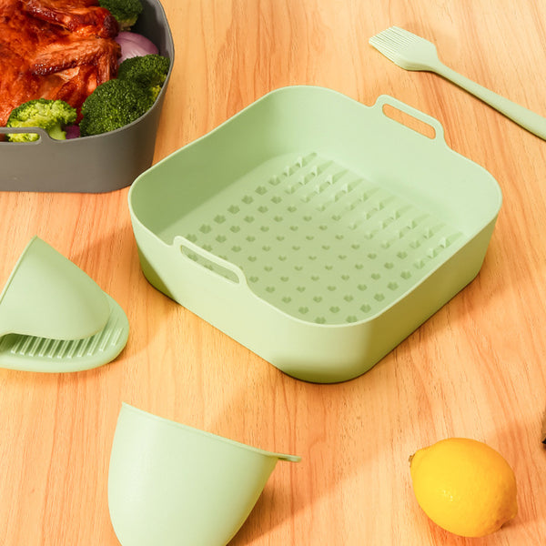 This silicone bakeware has an innovative nano mirror technology that does not bleed, makes it easier to remove from the mold, and comes with a pair of mini heat-resistant gloves that can be used in baking, air fryers, microwaves, and ovens.