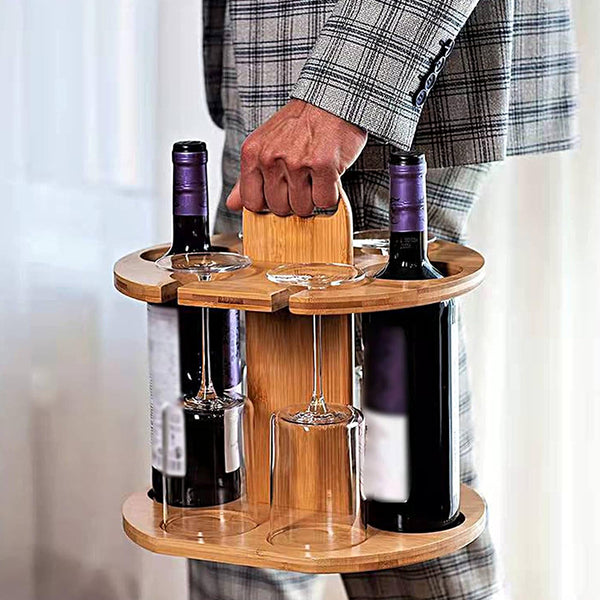 - Can hold 2 bottles and 4 stemmed glasses, offering a practical and stylish solution.