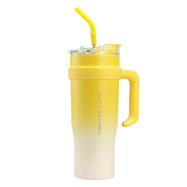 This stainless steel tumbler combines a high-capacity design, portable handle and reusable straw to provide a convenient drinking experience.
