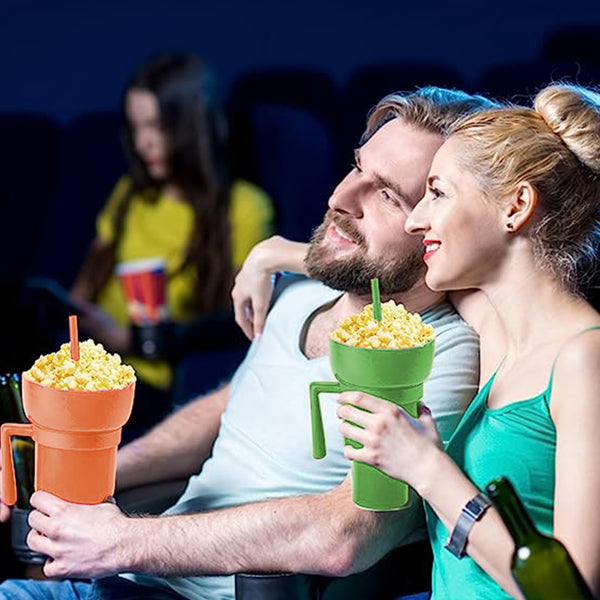 2-In-1 Snack Bowl with Straw Reusable Tumbler Popcorn Cup Orange