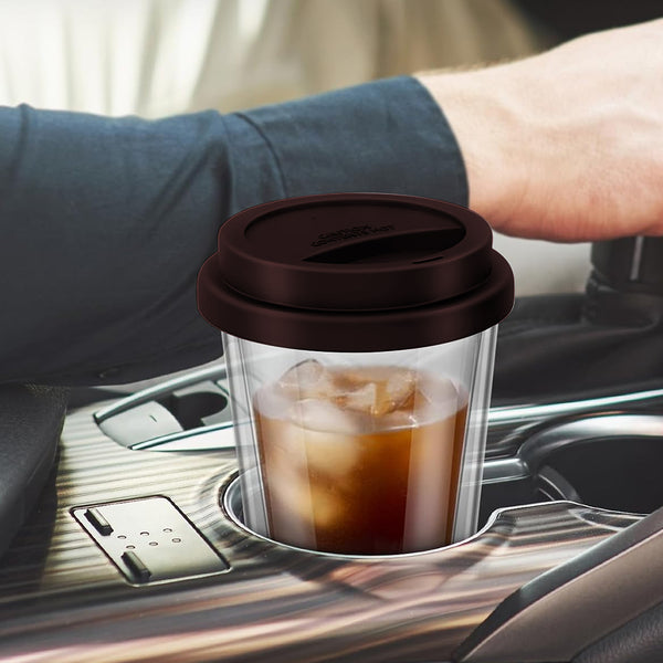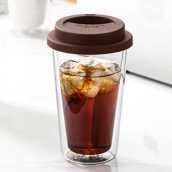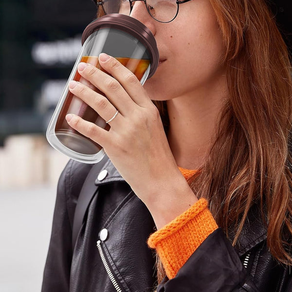 350ML Double Walled Glass Coffee Mug with Silicone Lid Travel Coffee Drinking Cup Coffee