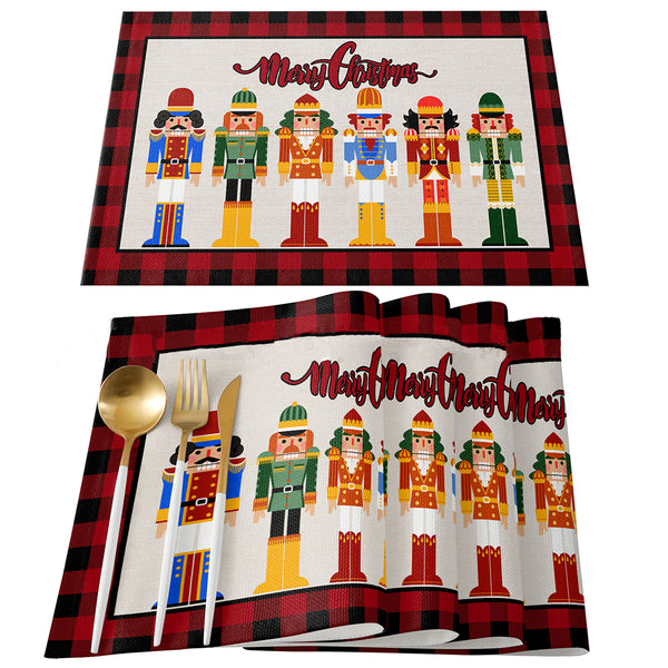 5Pcs Set Nutcrackers Merry Christmas Placemats Table Runner Set Xmas Party Decor Style 3