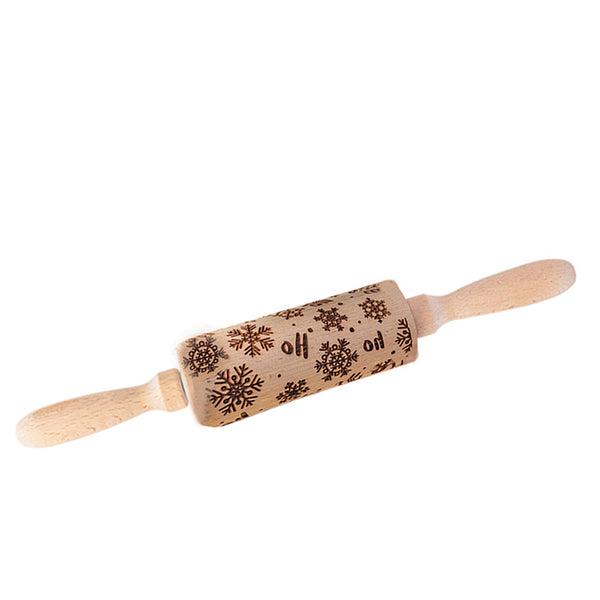 Christmas Embossing Rolling Pin Wooden Dough Roller Style 3