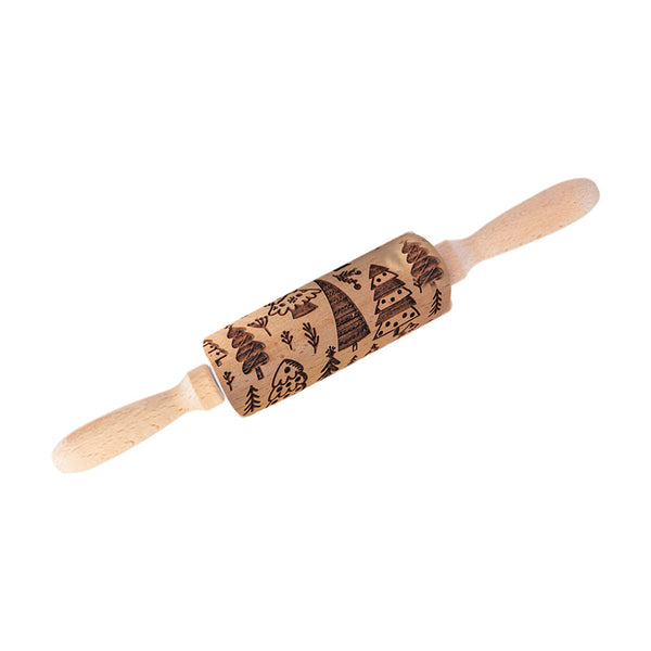 Christmas Embossing Rolling Pin Wooden Dough Roller Style 4