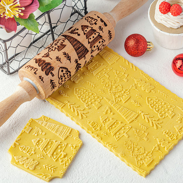 The Christmas embossing rolling pin embosses Christmas patterns on pastries, dough, clay and more, adding a unique character to your baked goods.
