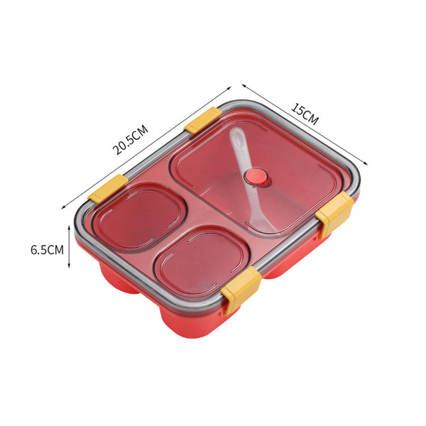 Portable 3-Compartment Microwaveable Lunch Box Bento Box with Cutlery Red