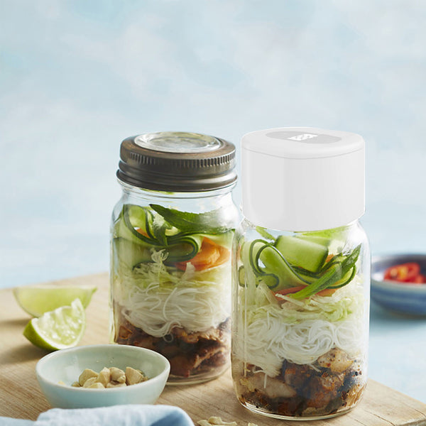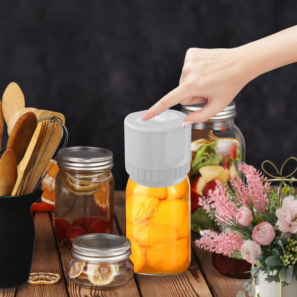 The mason jar vacuum sealer helps you extract the air from your mason jars, effectively preserves the flavor, nutrients and freshness of your food, and extends the life of your stored food.