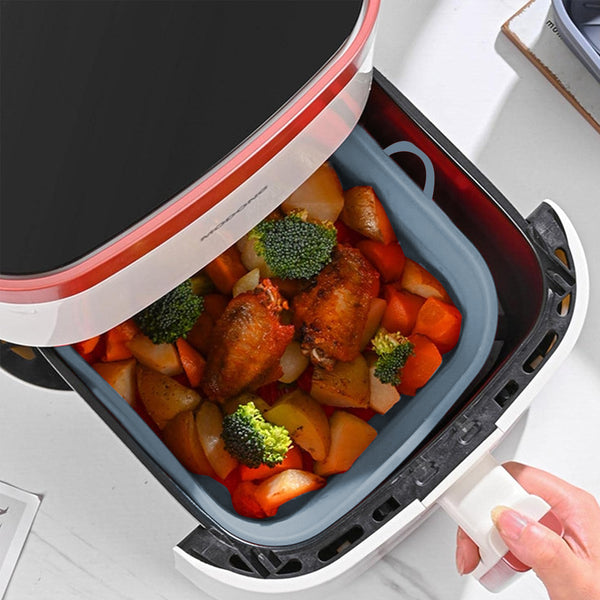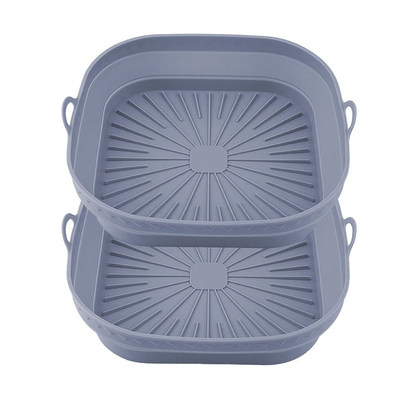 2Pcs Square Foldable Air Fryer Silicone Pot Reusable Baking Tray Basket Mat Oven Accessories Grey