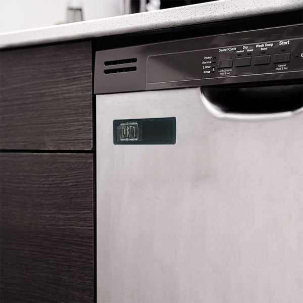 - With "CLEAN" and "DIRTY" on it, just slide it to change sides.