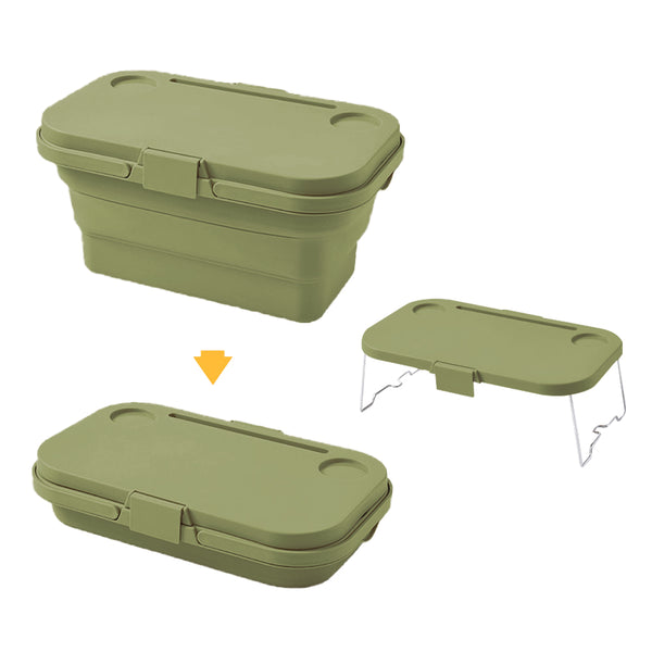 Multi-Functional Picnic Basket Camping Folding Basket with Cover for Outdoor Party Food Storage Green