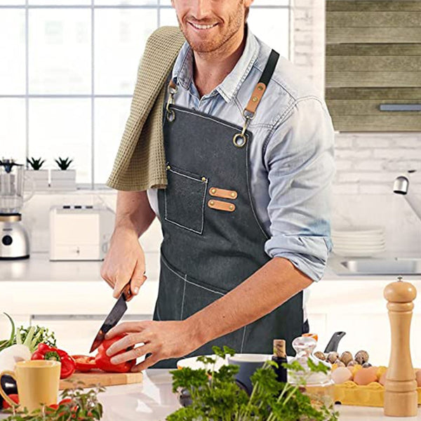 This apron with pockets protects your clothes from stains, splashes, residues, and filth while you're preparing ingredients.