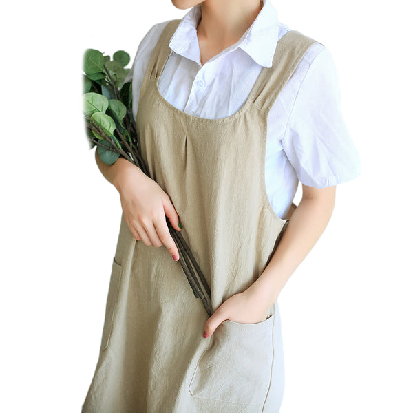Cotton Aprons Cross Back Apron with Pockets for Kitchen Flower Shop-Khaki