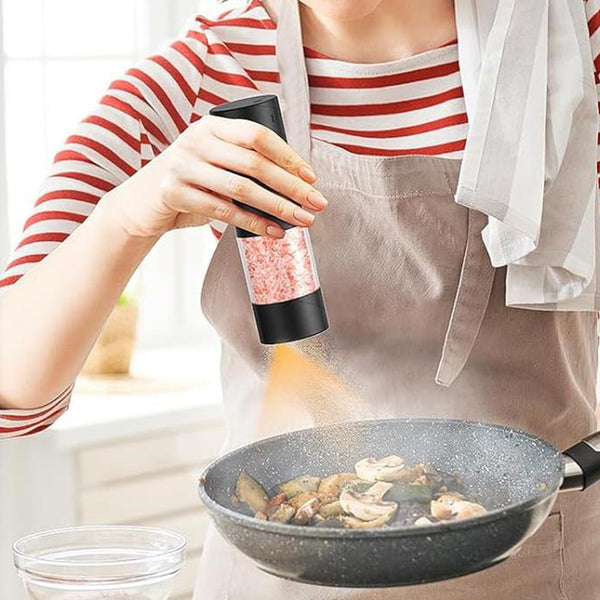 This rechargeable electric salt and pepper grinder set offers adjustable coarseness and quick charging for easy use.