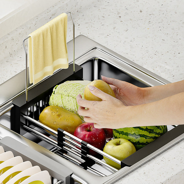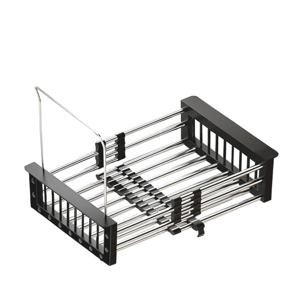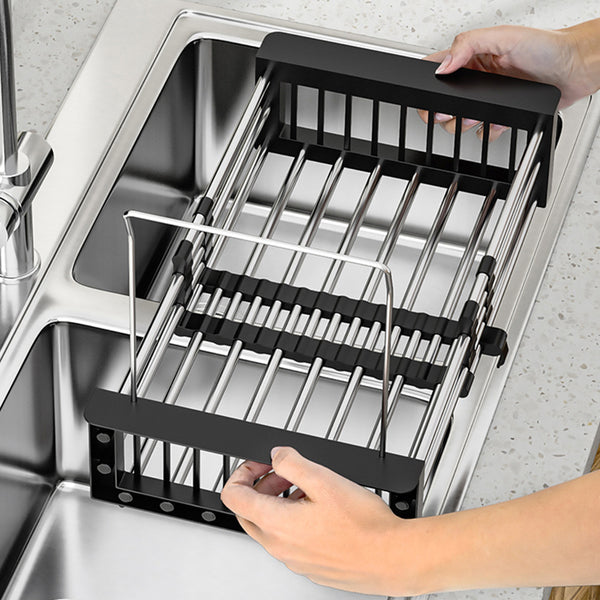 Extendable Sink Drain Basket Stainless Steel Strainer Basket Dish Drying Rack Kitchen Organizer Black