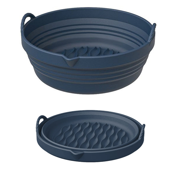 FancyGrab Reusable Foldable Round Air Fryer Silicone Pot Liner Baking Tray with Handles Navy Blue