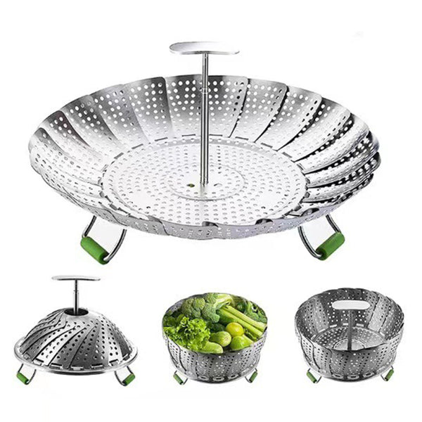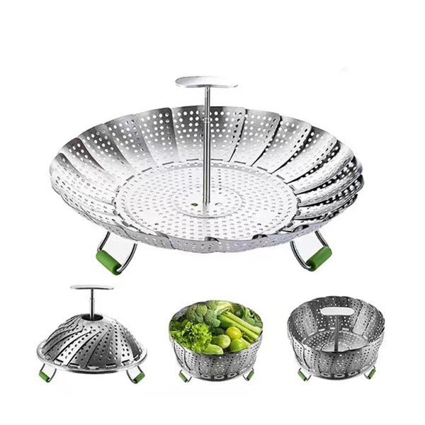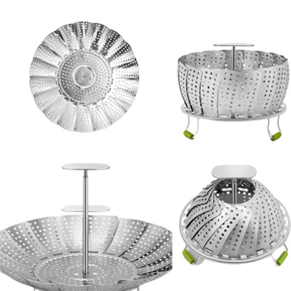 Foldable Steamer Basket Expandable Stainless Steel Steamer Insert for Vegetable Bread Bun Cooking