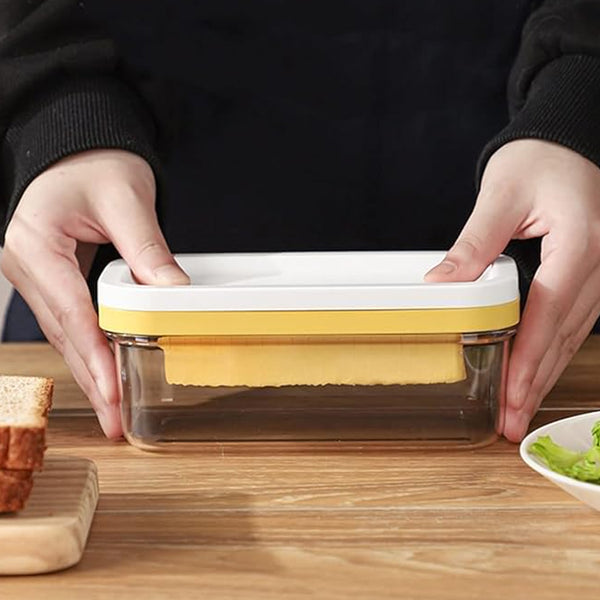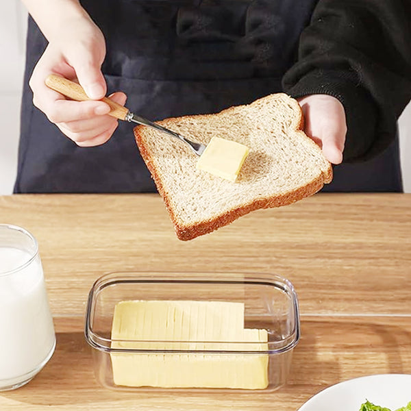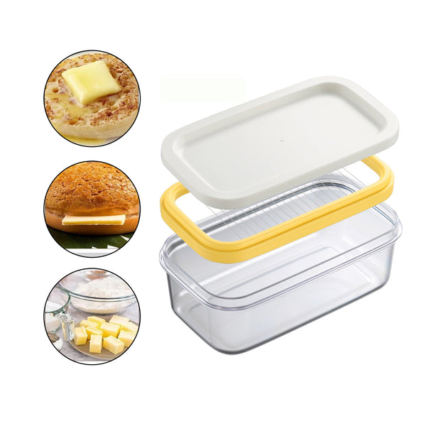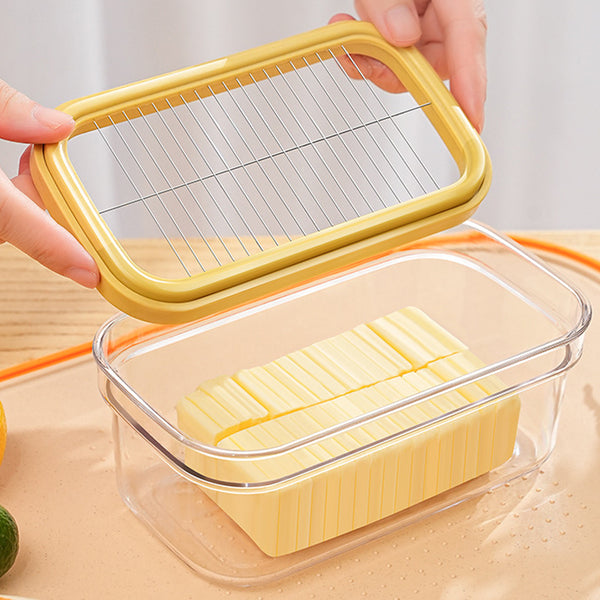 The butter container with lid not only covers the butter during storage but also functions as a slicer, offering a two-in-one solution for butter enthusiasts.