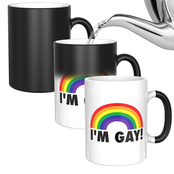 • Pour in hot water to reveal a vibrant rainbow flag and the words "I'm Gay", offering a delightful surprise, perfect for novelty gag gifts or pride accessories.