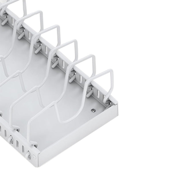 - Featuring 10 M-shaped brackets with 42-53cm of vertical extension space, ideal for storing pot lids, frying pans, chopping boards, baking trays, etc.