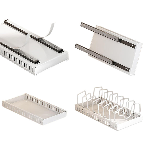 - The detachable rails allow for easy installation and removal without tools. Equipped with ball-bearing silent sliders, the organizer pulls out smoothly and quietly. Adjust the storage distance based on the size of your cookware for double the capacity.