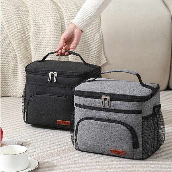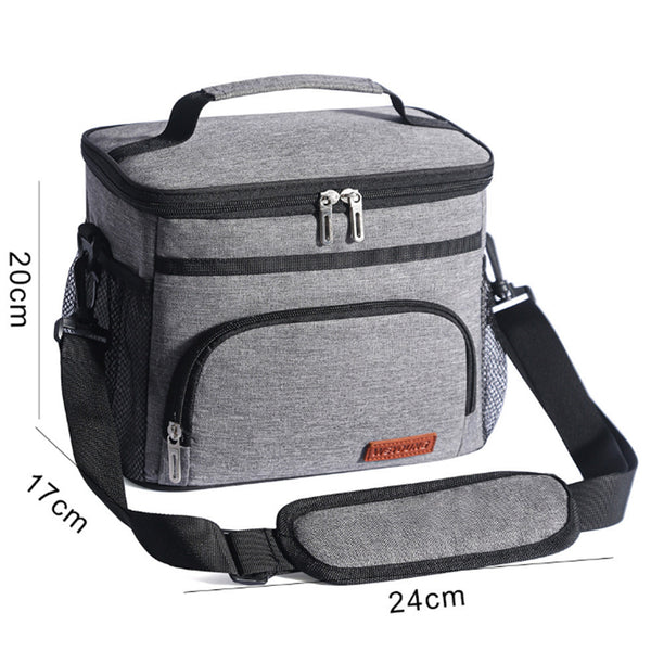 An insulated lunch bag with a 10L capacity, featuring three-layer insulation, durable Oxford fabric, and convenient carry options for keeping food fresh and easily portable.