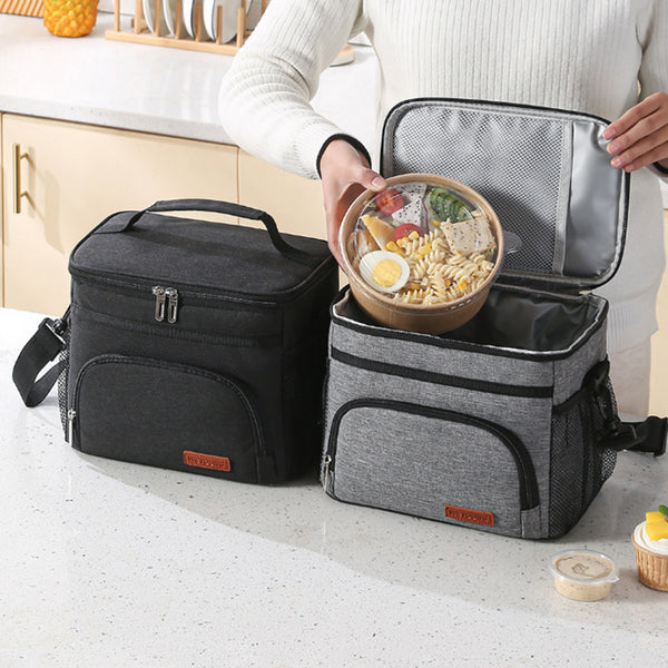 - This insulated lunch bag has a 10L capacity, providing ample space for lunch boxes.