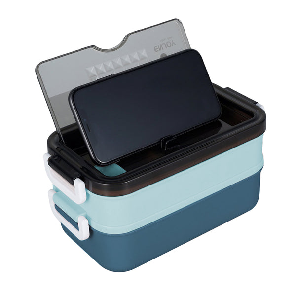 - Multifunctional lid with three-piece cutlery set, can be used as a mobile phone holder.