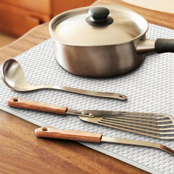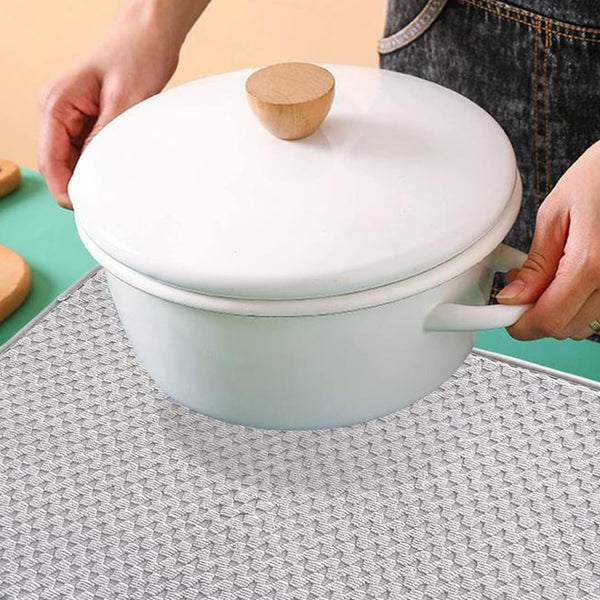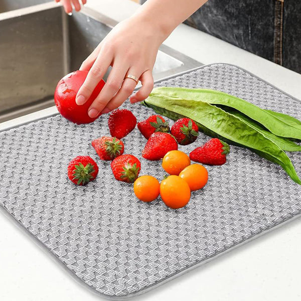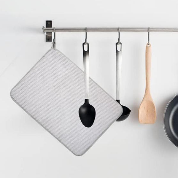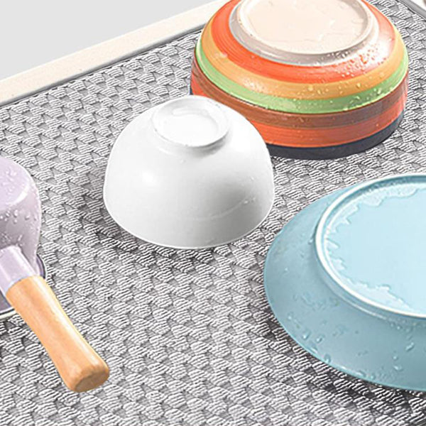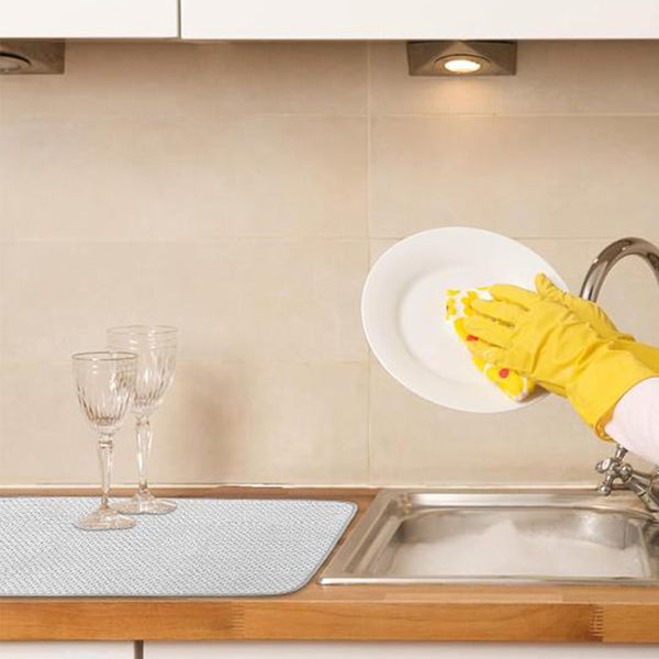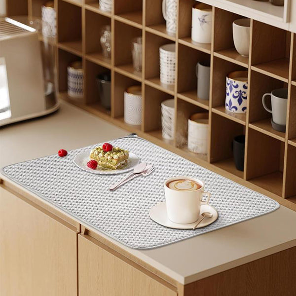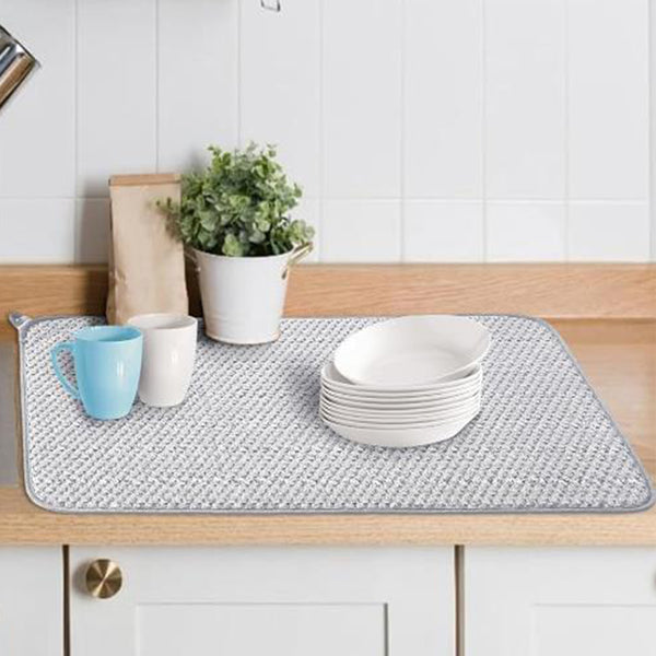This microfiber dish drying mat is crafted from high-quality, ultra-absorbent materials that swiftly absorb excess water from your dishes, glasses, and utensils.