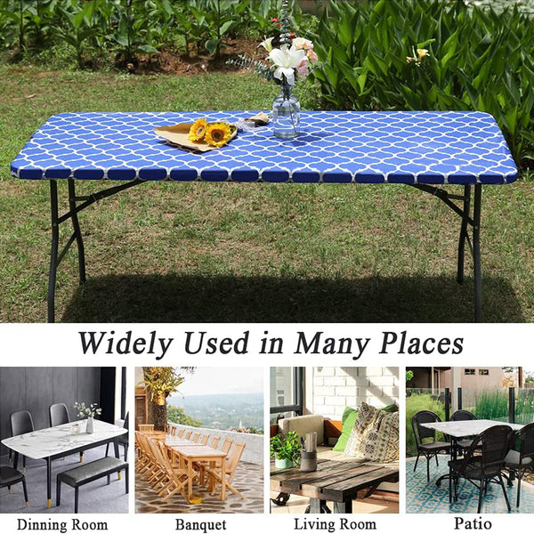 Moroccan Rectangular Fitted Table Cover Elastic Vinyl Tablecloth Blue-L