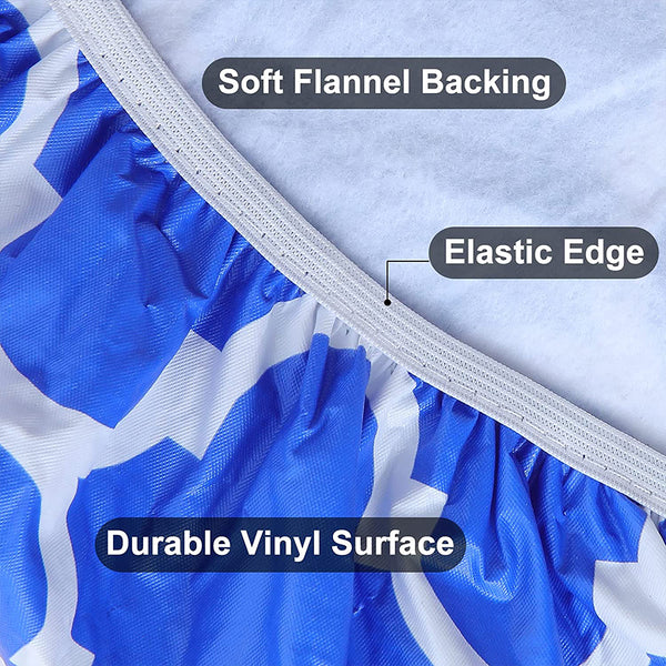 - The elastic edge tablecloth design is made to be a firmly snug fit for ANY table with the specified sizing and the soft flannel backing to reduce skidding and slipping.