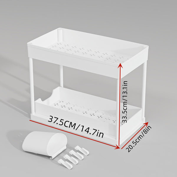 - Set includes 1x under sink organizer, 4x hooks and 1x small storage box to meet your needs.