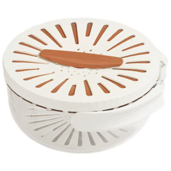 Multi-functional colander bowl for draining and preserving, featuring a foldable handle, perforated design for easy use, and space-saving compactness.