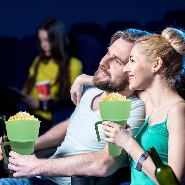 Multifunctional Stadium Tumbler Popcorn Cup Reusable Snack Bowl with Straw Green