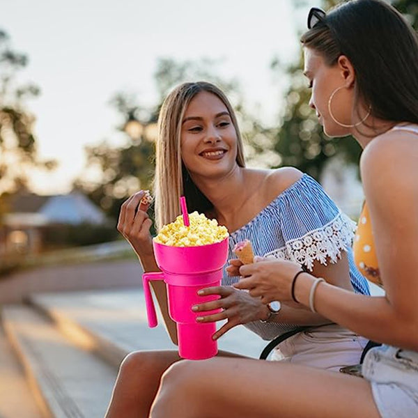 • 2-in-1 design, composed of a cup and a snack bowl.