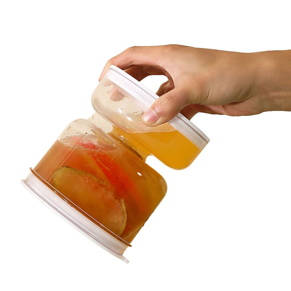 - Hourglass design separates liquid from food when flipped, which ensures that your pickles stay fresh and crunchy for a more extended period.
