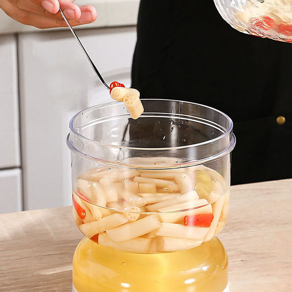 - There is an exhaust valve on the lid; You can open the exhaust valve to vent the gas produced during pickle storage.